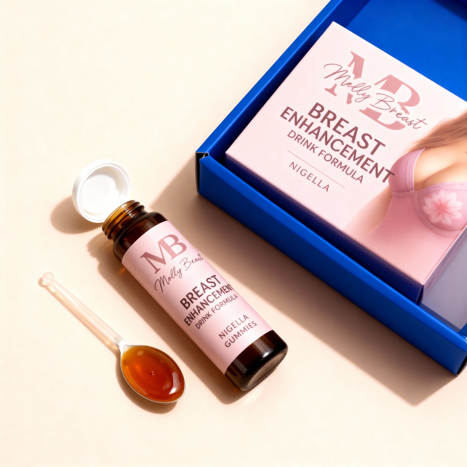 Formulé pour agir en profondeur, le Sirop Concentré MellyBreast™ combine des extraits végétaux reconnus pour soutenir l’apparence d’un buste plus rond et harmonieux.
